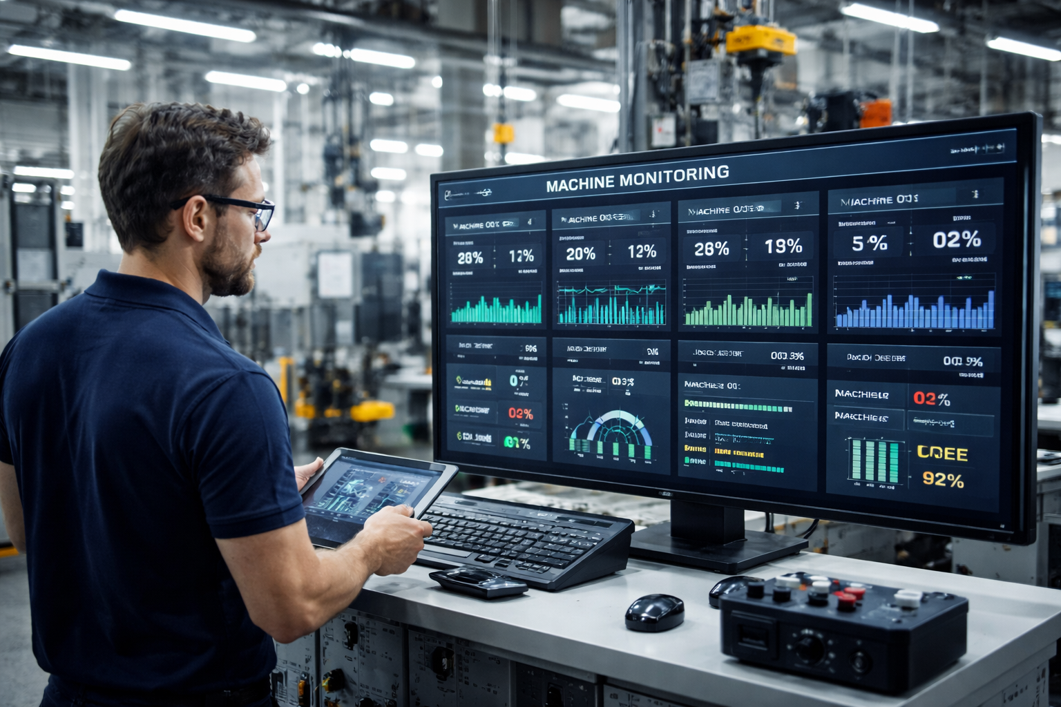 Machine monitoring, also known as equipment or industrial machine monitoring, is the practice of continuously tracking and analyzing the performance, condition, and usage of machinery, equipment, and assets within an industrial or manufacturing setting. The primary goal is to improve operational efficiency, productivity, and maintenance by gaining insights into machine behavior.